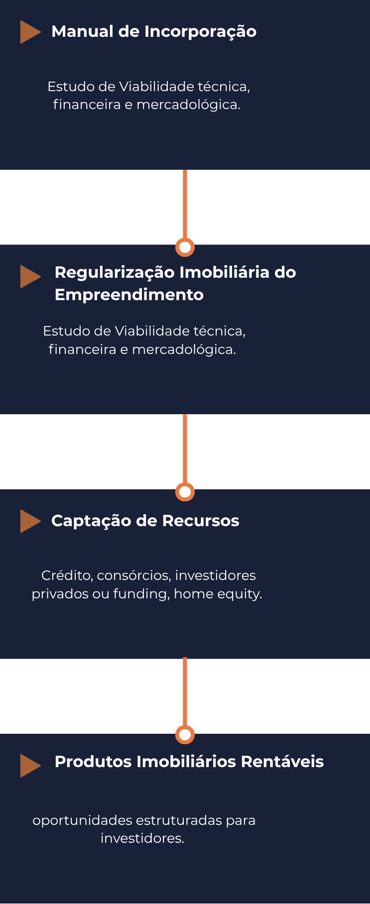 Combinamos expertise técnica e sensibilidade humana para transformar projetos em patrimônios reais. Atuamos em todas as etapas da incorporação à regularização.